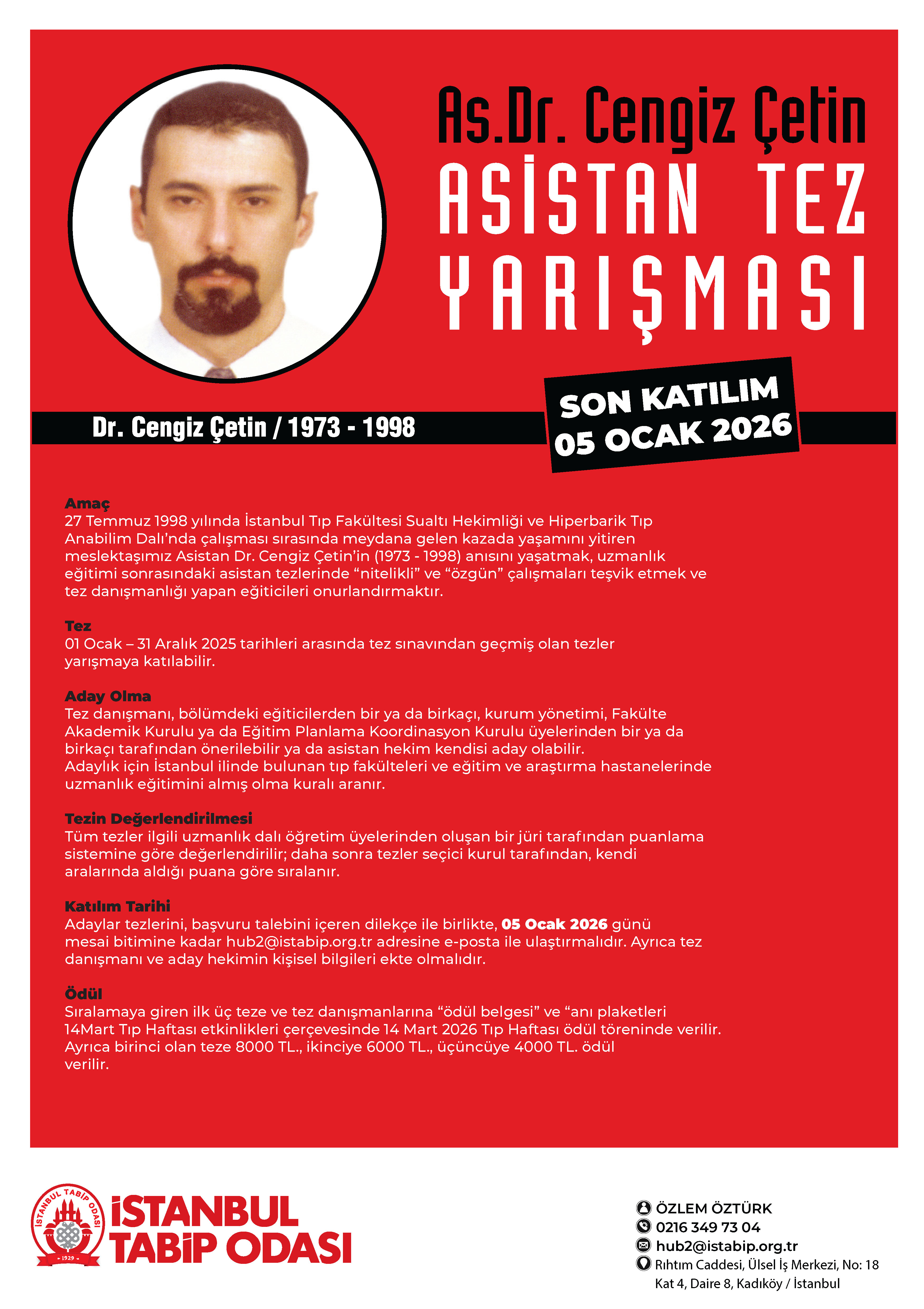 2026 Yılı As. Dr. Cengiz Çetin Asistan Tez Yarışması Duyurusu