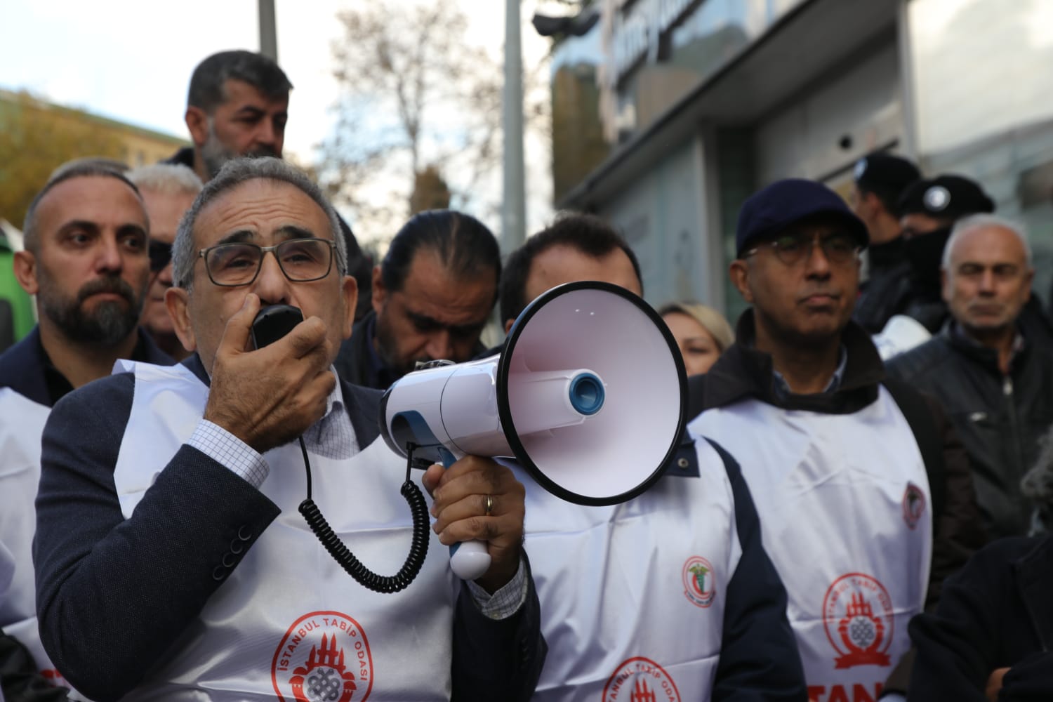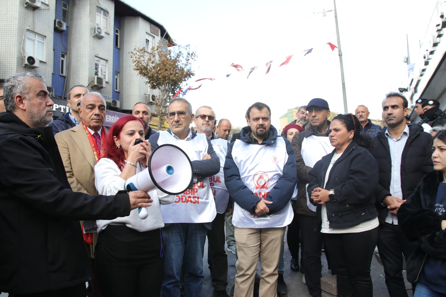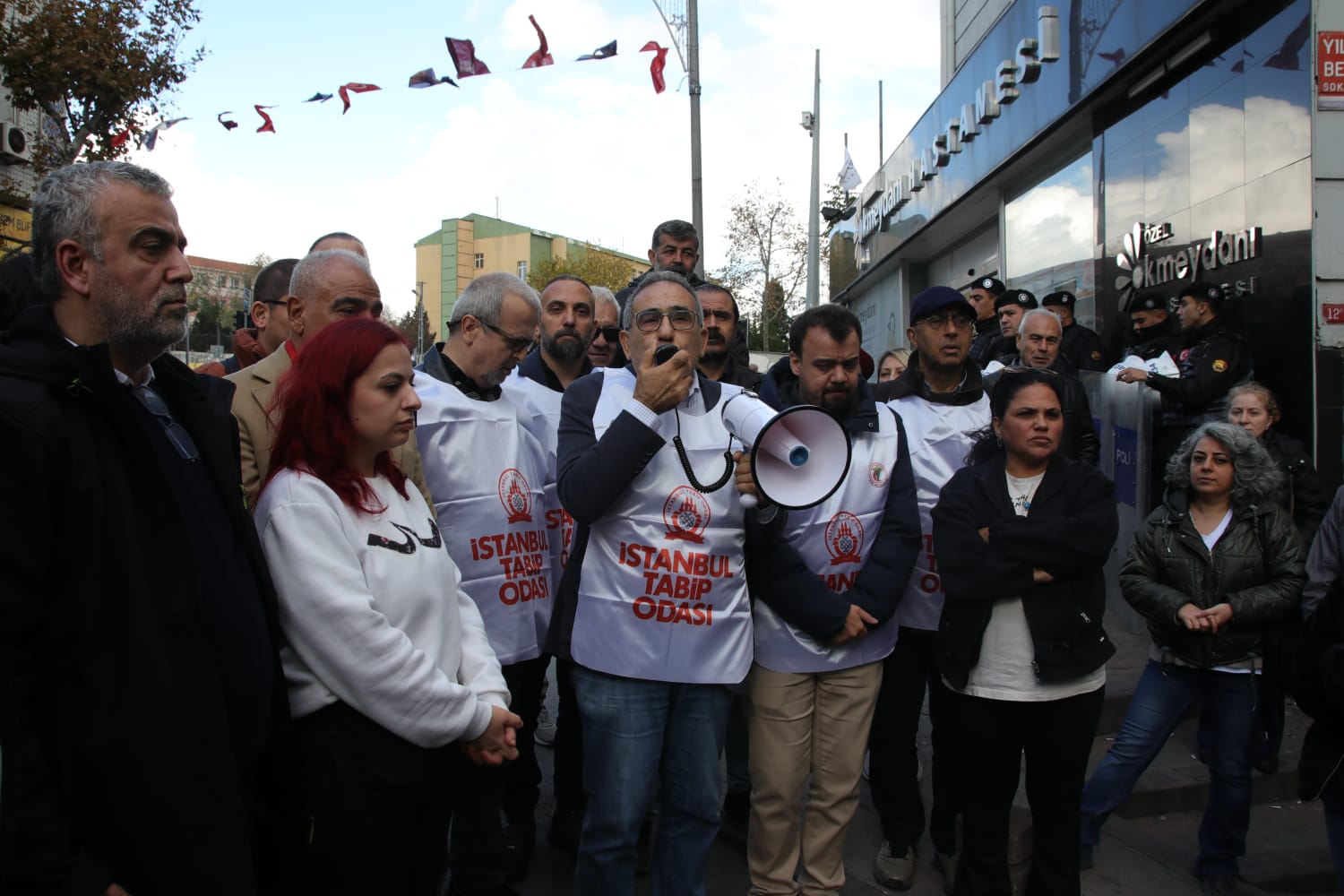 “Özel Okmeydanı Hastanesi’nde çalışan sağlık emekçileri, hekimler burada işsiz bırakma, iş yerini kapatma, çalışanlara haber vermeden aniden kapının önüne koyma durumuyla karşı karşıyalar. Bunun bir bahanesi olarak gösterilen depreme dayanıksızlık meselesi bugünün meselesi değil. Bu hastanede İstanbul depreminden sonra bir güçlendirme yapıldığını biliyoruz. Ciddi ve bilimsel yöntemlere uygun bir şekilde analiz yapılmadan, bir iki tane sıva çatlağını, paslı demirleri göstererek, bakın burası depreme dayanıksız diye bir gerekçe olamaz. Tabii ki sağlıklı koşullarda çalışmak tüm çalışanların hakkı. Güvenli çalışma hepimizin istediği ve savunduğu bir şey ancak bunu bir bahane olarak kullanarak işçilerin, hekimlerin kapının önüne konulmasını kabul etmemiz mümkün değildir. Az önce hekim arkadaşlarımızla görüştük, hastane başhekimi ile görüştük hepsi işten çıkarılmış durumda. Bize gösterilen bir yazıda İlçe Sağlık Müdürlüğü hastanenin çalışmasını askıya aldığını duyurmuş. Hayat bize şunu gösterdi; hep beraber direnirsek, sesimizi duyurursak haklarımızı alabiliriz. Bir işten çıkarılma söz konusu, iş kanunundan kaynaklanan tazminatlar verilmeli, birikmiş, içeride bırakılmış alacakların derhal ödenmesi gerekiyor. Birkaç aydan beri ödeme ile ilgili gecikme yaşandığını öğrendik. Bazı arkadaşlarımızın ücretsiz izne çıkarıldığını, bazı arkadaşlarımızın işten çıkarıldığını, bazılarına da vaatlerde bulunularak işçiyi bölmeye çalıştıklarını görüyoruz. Ancak bunların hiçbiri gerekçe olamaz. Aslolan şey direnmektir. İstanbul Tabip Odası bu konuda her türlü desteği vermeye hazırdır. Biz elimizden geleni yapacağız. Tabii hekim arkadaşlarımızın işten çıkarılmasıyla ilgili yasal yollara başvurma hakkımız var biz bir meslek örgütüyüz ama aynı zamanda da bir dayanışma örgütüyüz. Parçalanarak kendimizi işçi, memur, teknisyen, hastabakıcı, hemşire olarak ayırmıyoruz. Hep beraber direnerek kazanacağız.”