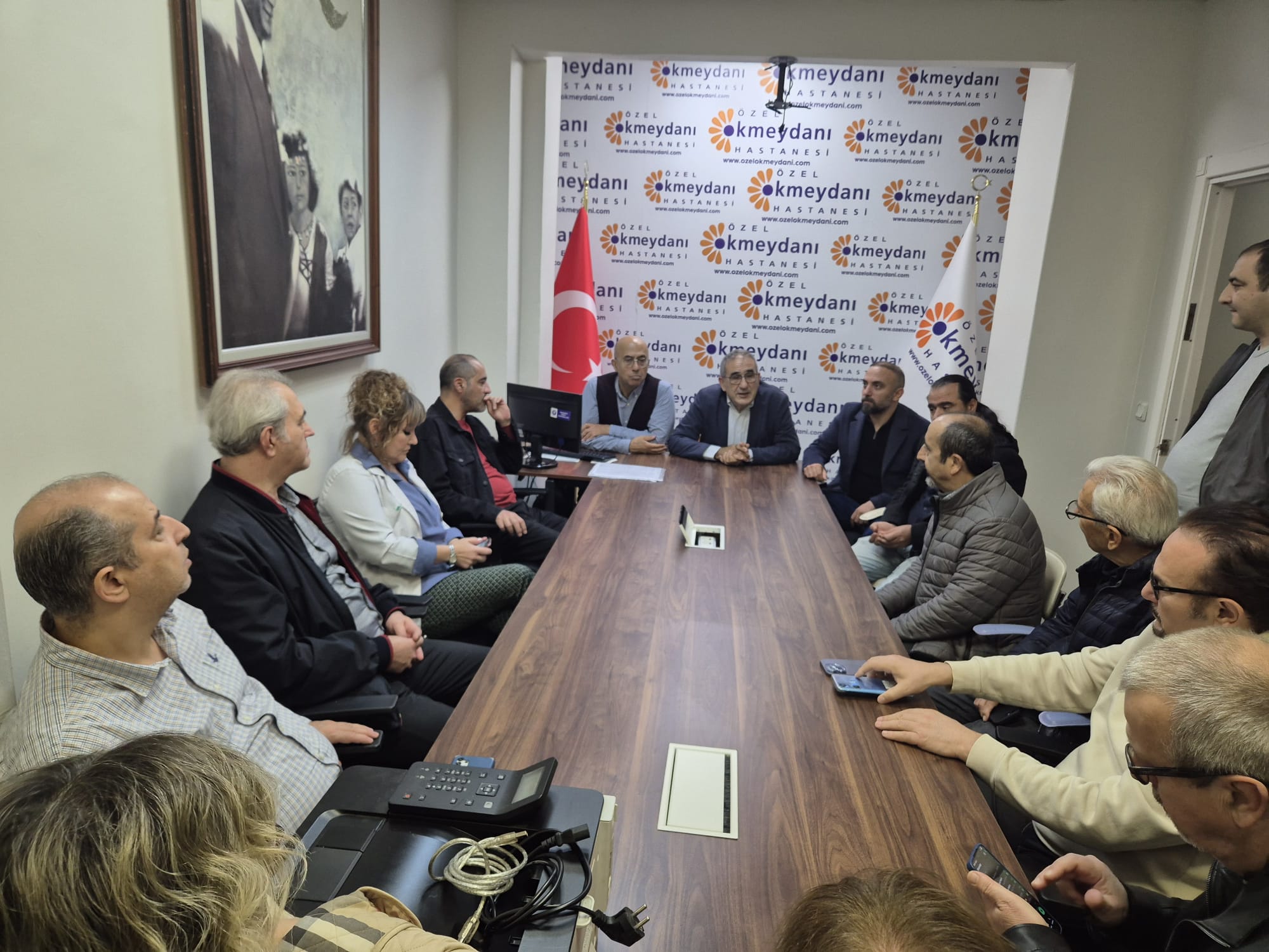 Ziyarette, İTO Yönetim Kurulu Başkanı Dr. Osman Küçükosmanoğlu, Genel Sekreter Dr. Ertuğrul Oruç, Yönetim Kurulu Üyesi Dr. Fikret Aydın, İTO Özel Hekimlik Komisyonu’ndan Dr. Güray Kılıç, İTO İşçi Sağlığı İşyeri Hekimliği Komisyonu’ndan Dr. Osman Öztürk ve İTO Temsilciler Kurulu Divanı üyesi Dr. Benan Koyuncu yer aldı. İTO heyeti hekimler ve sağlık çalışanlarıyla bir araya gelerek hastanede yaşananları dinledi ve yürütülecek mücadeleye dair fikir alışverişinde bulundu. Dr. Osman Küçükosmanoğlu hastane önünde yaptığı açıklamada şunları söyledi: