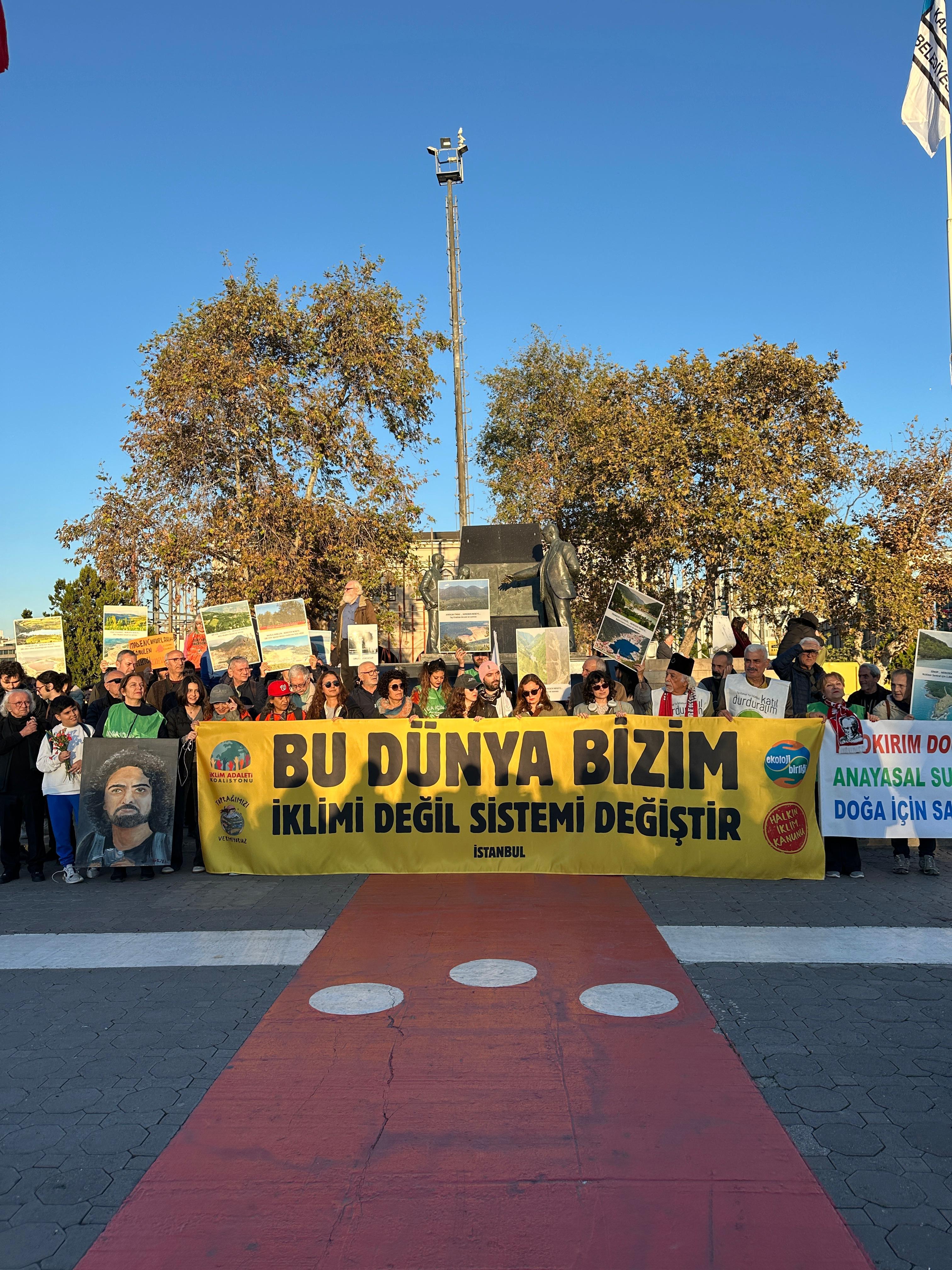15 Kasım 2025 tarihinde İskele Meydanı’nda gerçekleştirilen açıklamada, Türkiye’nin dört bir yanında süren ekolojik yıkımın derinleştiği de vurgulandı ve iklim krizinin “doğal değil, politik bir sonuç” olduğu ifade edildi.