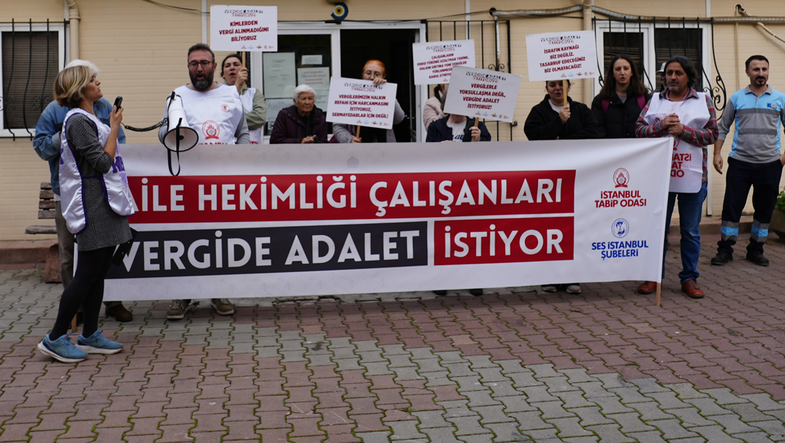 “Vergide Adalet İstiyoruz” eylemlerinin ikinci safhası başladı. Aile hekimleri ve sağlık çalışanları tüm Türkiye’de olduğu gibi İstanbul’da da yaptıkları basın açıklamasıyla taleplerini dile getirdi.