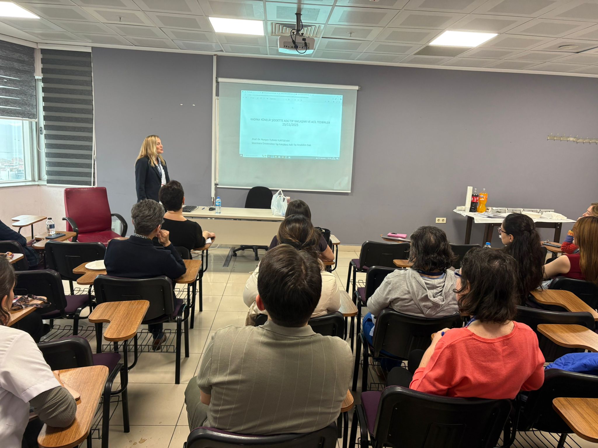 25 Kasım Kadına Yönelik Şiddete Karşı Uluslararası Mücadele Günü kapsamında, 26 Kasım 2025 tarihinde, Marmara Üniversitesi Pendik Eğitim ve Araştırma Hastanesi’nde “Kadına Yönelik Şiddetin Sağlık Hizmetleri Yönünden Tüm Boyutlarıyla Değerlendirilmesi” paneli gerçekleştirildi.