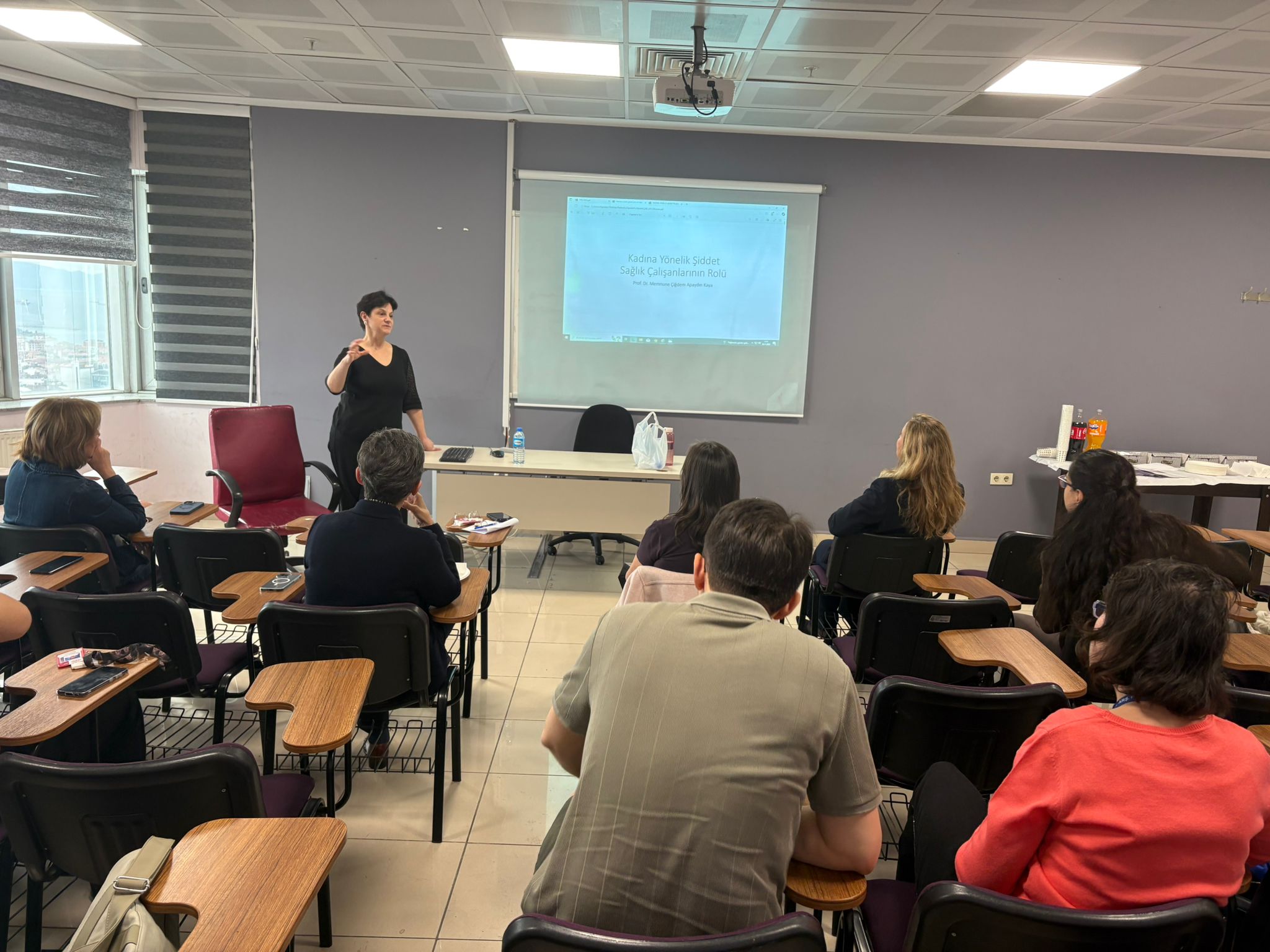 Panelde, kadına yönelik şiddet durumunda birinci basamakta sağlık çalışanı yaklaşımları, adli tıp ve acil tedbirler ile psikolojik ilk yardım başlıklarında konuşmalar sonrası katılımcılarla interaktif ve verimli bir sohbet gerçekleştirildi.