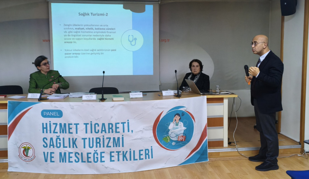 Türk Tabipleri Birliği’nin (TTB) düzenlediği “Hizmet Ticareti, Sağlık Turizmi ve Mesleğe Etkileri” paneli, 27 Aralık 2025 günü TTB’de yapıldı. Panel, TTB’nin sosyal medya hesaplarından canlı yayımlandı.