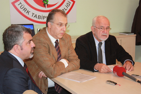 Sağlık Bakanı’nın, "Sizin mahkemeyle satış yaptığınız bir yer var mı arkadaşlar? Yapmayın Allah aşkına. Böyle bir şey olamaz yani. Onun için bu yollar çıkmaz yol. Ben sektöre bunları bilerek söylüyorum ki, gidin bu Birliklere laf anlatın yani. Bu gitmez bir yere. Bakın iki maddelik kanundur arkadaşlar, üç maddelik kanundur. Bir kanun yaparız deriz ki Eczacılar Birliği, Tabipler Birliği, Dişhekimleri Birliği’nin birlik kanunları iptal edilmiştir. Hadi bakayım Danıştay karar alsın da göreyim bakıyım. Hangi kararı alacağını ondan sonra göreyim bakayım ben” sözlerine karşılık yapılan basın toplantısına Türk Tabipleri Birliği Merkez Konsey Başkanı Prof. Dr. Gençay Gürsoy, TTB Merkez Konsey Üyesi Dr. Ali Çerkezoğlu, Türk Diş Hekimleri Birliği üyeleri Dişhekimi Tarık İşmen, Dişhekimi Ali Gürlek ve Dişhekimi Bülent Öztürk katıldı.