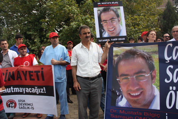 Raporda ayrıca, sağlıkta çalışma koşullarının can aldığı söylendi. Samsun 19 Mayıs Üniversitesi Hastanesi’nde görevli Acil Asistanı 26 yaşındaki Dr. Mustafa Bilgiç'in ölümünün “hata değil iş cinayeti” olduğunun altı çizildi.