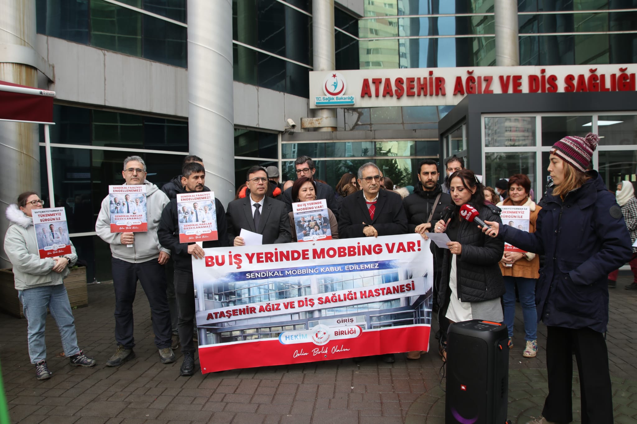 Hekim Birliği Sendikası, İstanbul Şube Yönetim Kurulu üyesi Dt. Janat Düzgün’e sendikal faaliyet yürütmesi nedeniyle yapılan hukuksuzluğa karşı 22 Ocak 2026 tarihinde, Ataşehir Ağız ve Diş Sağlığı Hastanesi önünde basın açıklaması düzenledi. Yapılan açıklamada Dt. Janat Düzgün’ün son dönemde ardı arkası kesilmeyen, hiçbir hukuki dayanağı olmayan mesnetsiz soruşturmaların sonucunda cezalandırma amacı taşıyan usulsüz bir tayin kararının hedefi olduğu belirtildi.