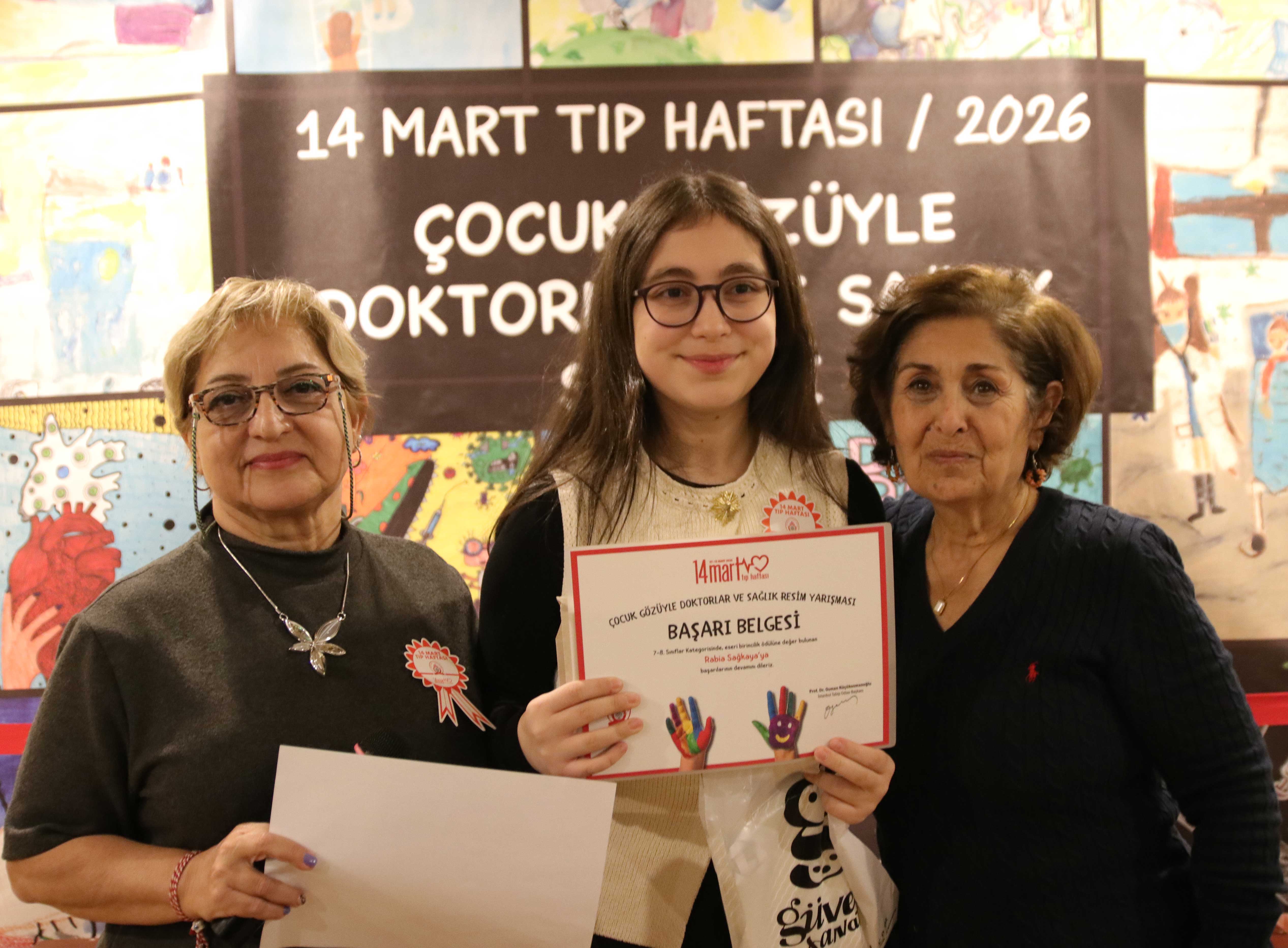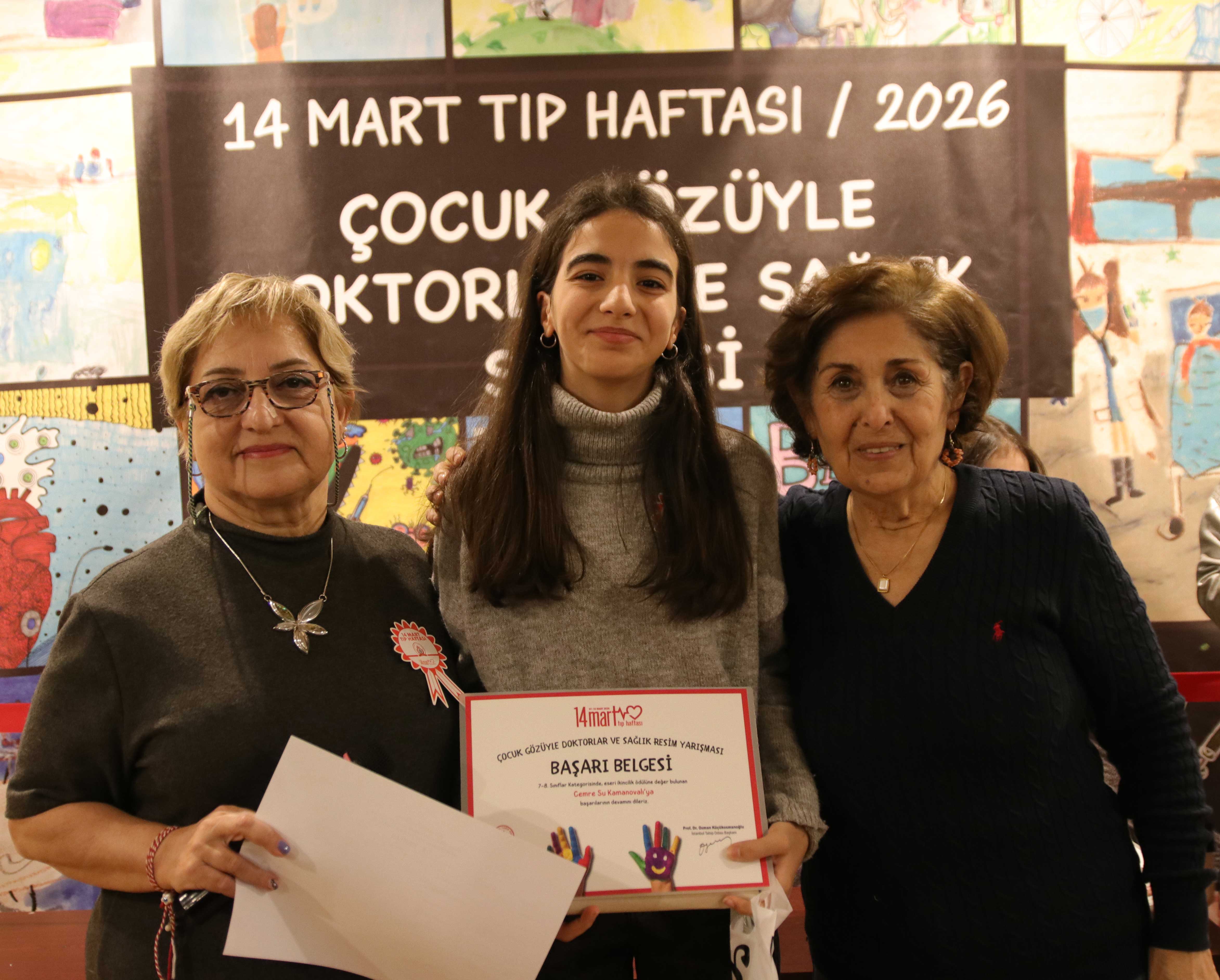 “Çocuk Gözüyle Doktorlar ve Sağlık Resim Yarışması”nda birinci, ikinci ve üçüncüler ile mansiyona layık görülen öğrencilere ödüllerini, İstanbul Tabip Odası (İTO) Yönetim Kurulu üyesi Dr. Ayşen Yavru, İTO geçmiş dönem başkanı Dr. Nergis Erdoğan ve geçmiş dönem yönetim kurulu üyesi Dr. Esin Tuncay verdi.