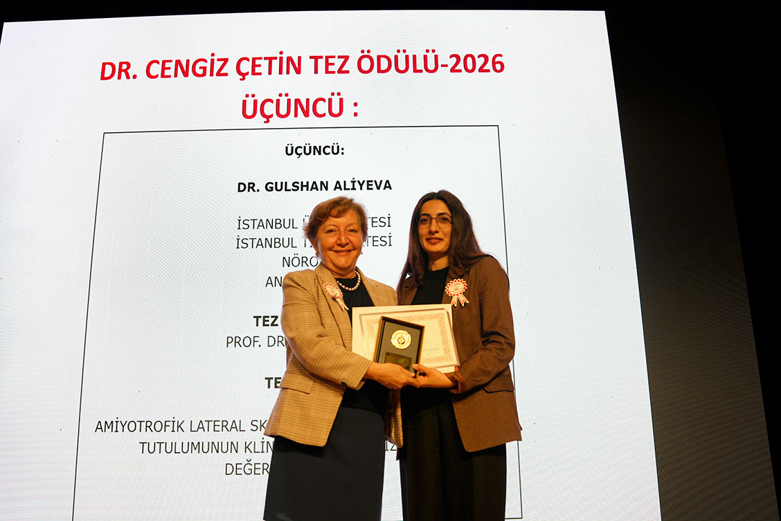 “Amiyotrofik Lateral Skleroz Hastalarında Seçici Kas Tutulumunun Klinik ve Elektrofizyolojik Değerlendirilmesi” başlıklı tezi ile İstanbul Üniversitesi İstanbul Tıp Fakültesi Nöroloji Anabilim Dalı’ndan Dr. Gulshan Alıyeva'ya ise üçünlük ödülü verildi.