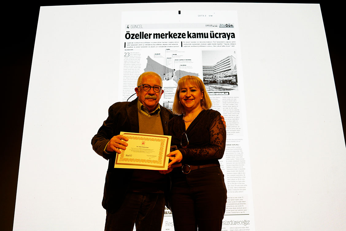 Gazete Haber-Araştırma Ödülü'nün sahibi, hastaları mağdur eden sağlıktaki özelleştirme politikalarını ve plansızlıkları kapsamlı bir şekilde inceleyen "Özeller Merkeze Kamu Ücraya" başlıklı haberiyle Birgün Gazetesi'nden Sibel Bahçetepe oldu.