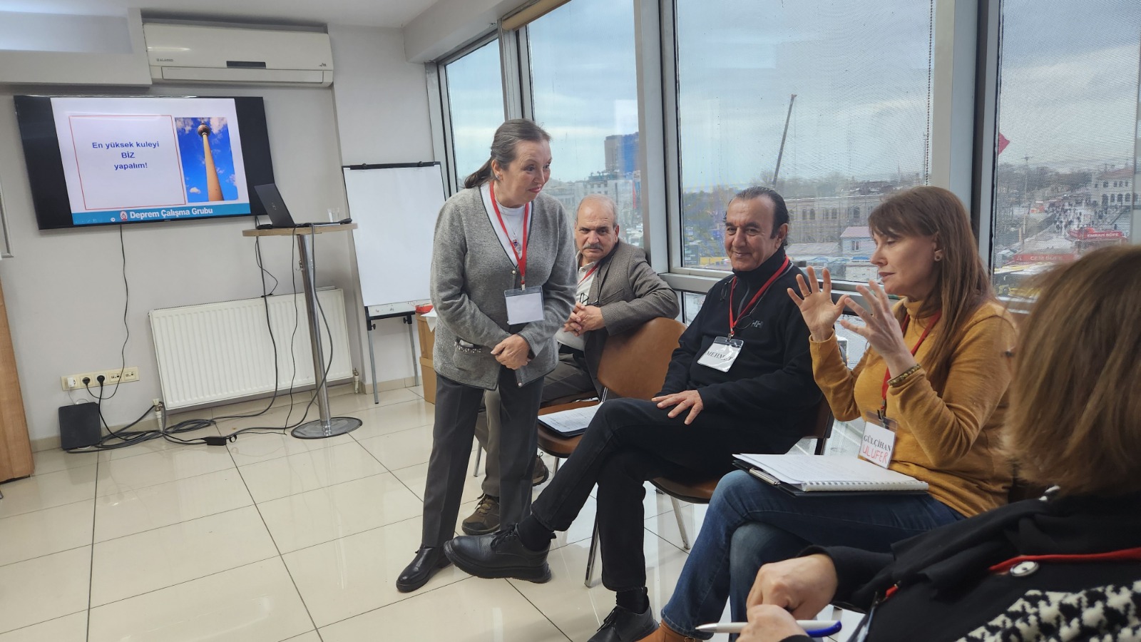 İstanbul Tabip Odası Kadıköy Büro'da gerçekleştirilen eğitim kapsamında Kadıköy Belediyesi Afet Eğitim ve Bilinçlendirme Parkı'na gidilerek deprem simülasyon sistemleri de kullanıldı.
