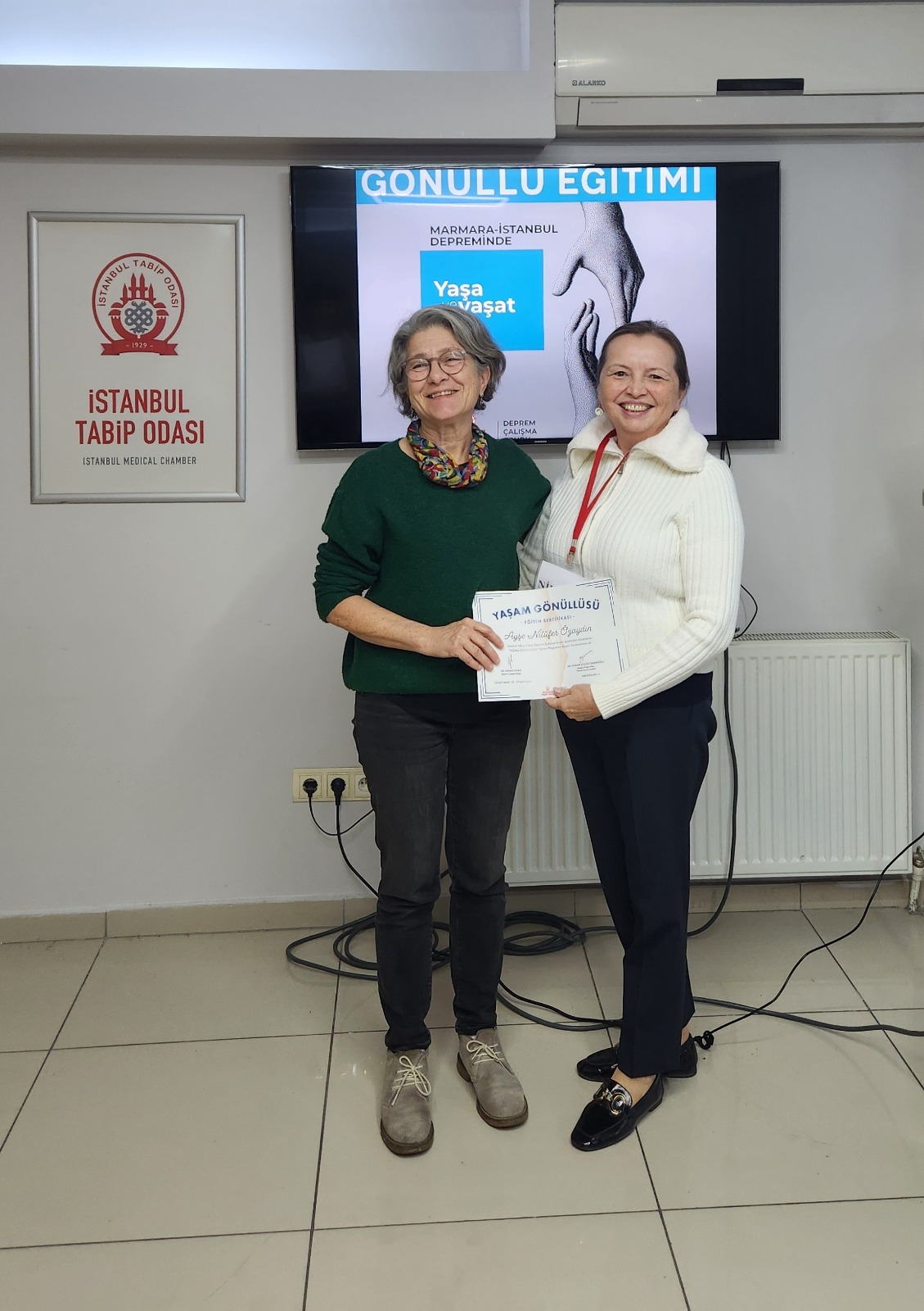 “Deprem Çalışma Grubu Gönüllü Projesi” kapsamında oluşturulan ve ilki 28-29 Mart 2026 tarihlerinde gerçekleştirilen “Yaşam Gönüllüsü” eğitimi ile 17 katılımcı sertifikalarını aldı.