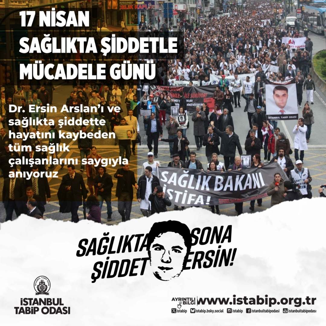 Türk Tabipleri Birliği’nin 17 Nisan’ı “Sağlıkta Şiddete Karşı Mücadele Günü” ilan etmesi de, sağlıkta şiddeti bireysel değil, sağlık sisteminin merkezindeki yapısal bir sorun olarak görmesinin ifadesidir. Bu nedenle 17 Nisan, Dr. Ersin Arslan’ın şahsında yitirdiğimiz bütün sağlık emekçilerini anarken, sağlıkta şiddeti üreten düzene karşı mücadelemizi büyütme günüdür.