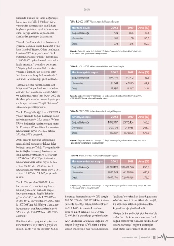 başlamış, özellikle 1980’lerin ikinci Tablo 1. 2002-2019 Yılları Arasında Hastane Sayıları