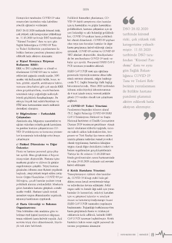 edilerek hızla aksiyon alınmıştır. YBÜ alanları oluşturuldu. Ameliyathane- tarihinde DSÖ tara-