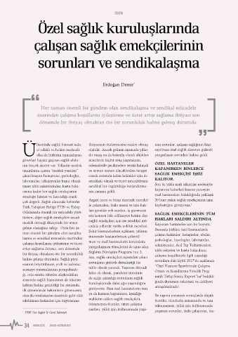 üzere tıbbi sekreterinden hasta bakı- sendikal bir örgütlülüğe büründürme- Son üç yılda mali sıkıntılar nedeniyle